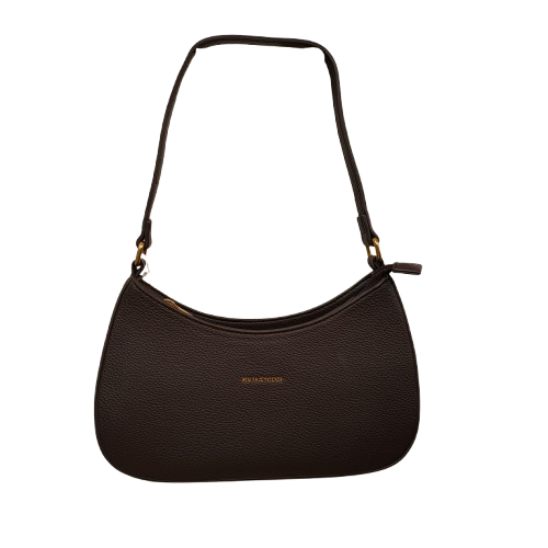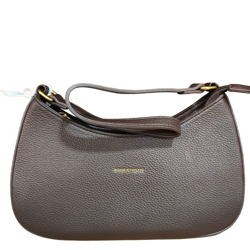 Bolso mediano para mujer, color marrón chocolate, con asa y bandolera . Detalles dorados