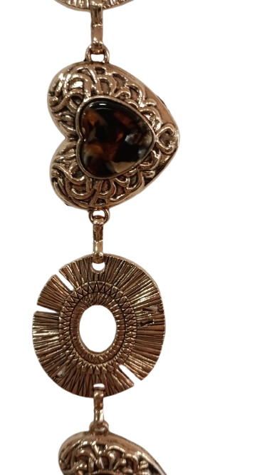 Cinturón metal dorado. Mujer. Detalles corazón y círculos