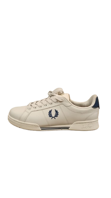 Deportiva Fred Perry. Hombre. Color porcelana. ribete y logo en azul