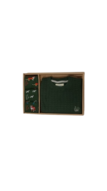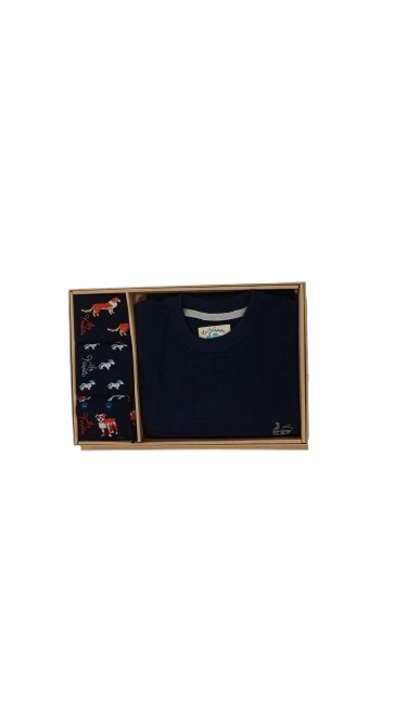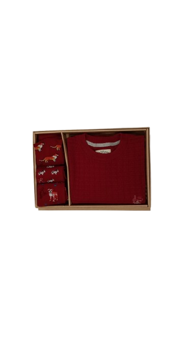 Caja La Vespita con jersey liso  y tres pares de calcetines con dibujos de perros